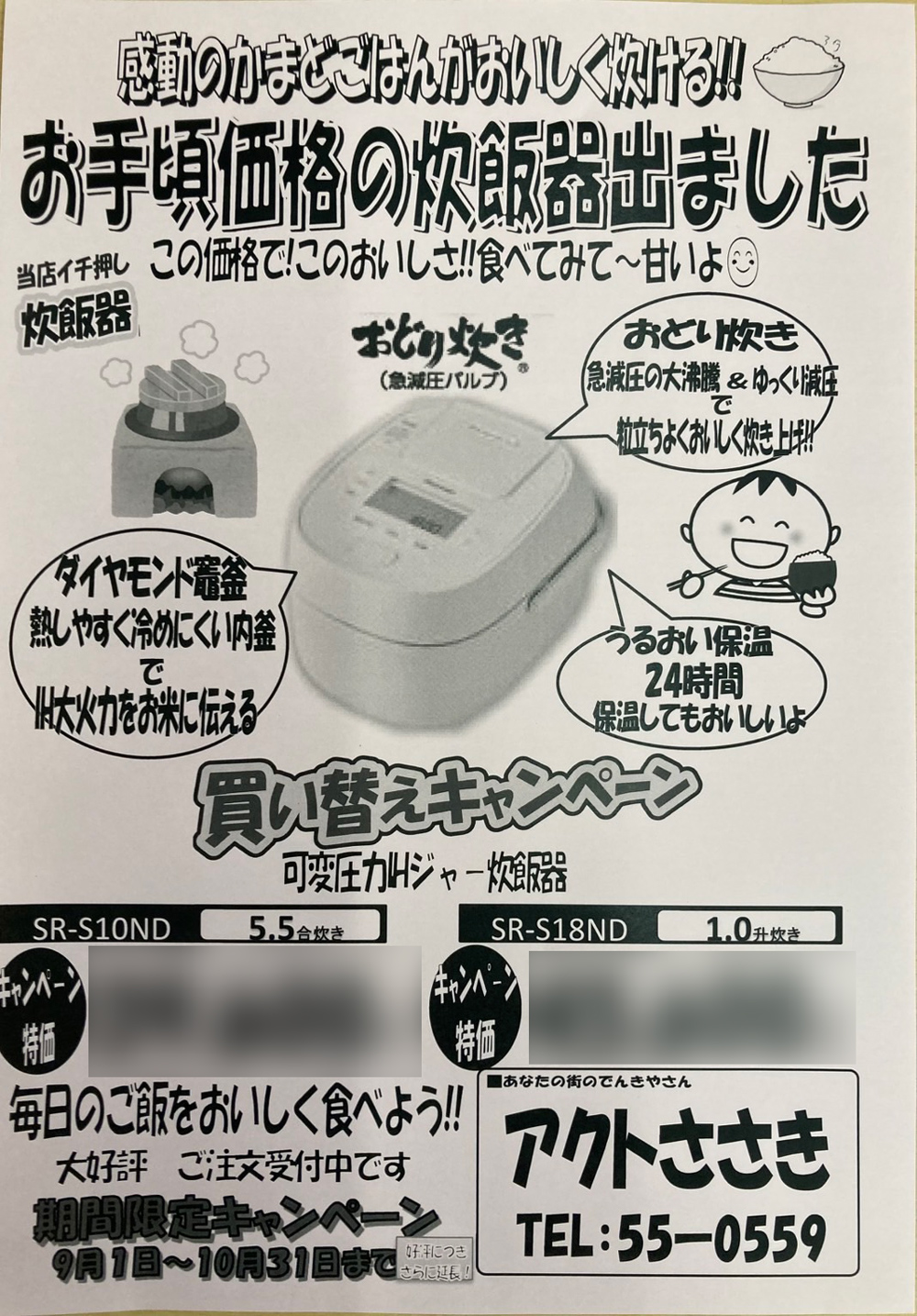 大変お得な、炊飯器とレンジのキャンペーンのご案内です。
